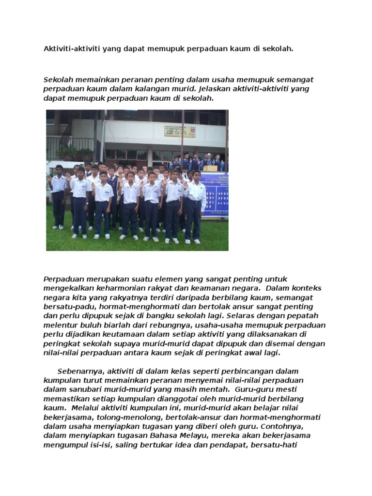 Aktiviti Aktiviti Yang Dapat Memupuk Perpaduan Kaum Di Sekolah Pdf